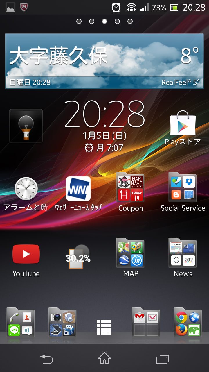 端末の電源ボタンを長押しすると、